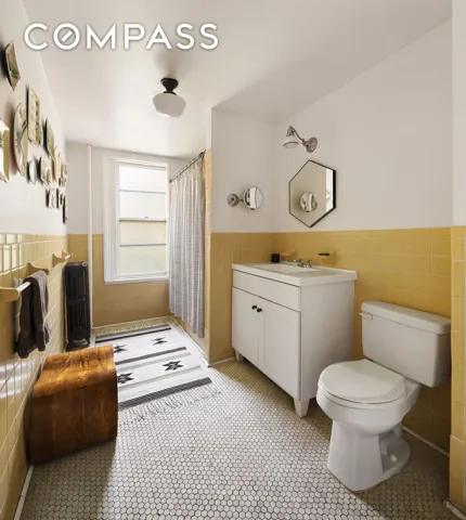 Up the gently curving staircase and approached from the third floor, the upper level duplex offers spacious accommodations with authentic personality. Configured as a 3 BR/2 BA + study, the duplex’s lower level boasts a generously-scaled, light-filled living room with a wood-burning fireplace, a large renovated eat-in kitchen with its own working fireplace and a full bathroom. On the upper level are three gracious bedrooms, ample closet space, a full windowed bathroom with washer/dryer and a crowning stairwell skylight that illuminates the upper floors and staircase below.
