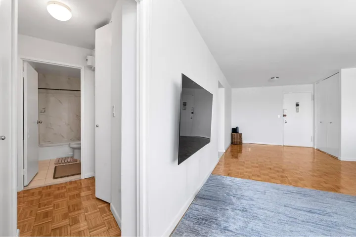 The Apartment offers a renovated Kitchen with Quartz Countertops, Kitchen Cabinets and New Appliances Separately from the Living Space while the Expansive Open Living Space Flows Seamlessly towards a Walk-In Closet area consists of two closets and leads to white-tiled Full Bathroom. In total, the apartment has three Closets including huge Coat Closet at the entrance of the apartment. An Efficient HVAC Wall Unit providing both both Heat and Air Conditioning. Monthly Common Charges includes Electric & Free Gym Membership. A Laundry Room just around the corner on the same Floor for your convenience.
