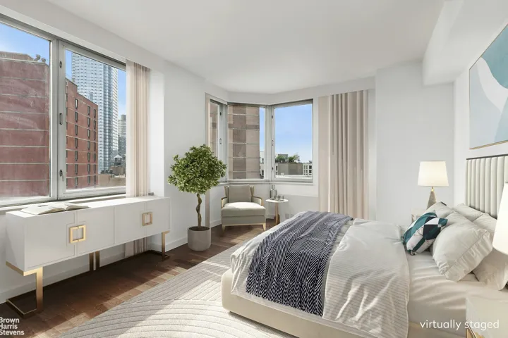 Experience elevated city living in Residence 15J, a thoughtfully updated one-bedroom, one-bath home designed for both style and comfort. Spanning 695 square feet, this southwest-facing retreat boasts expansive windows, a private balcony, and rich dark hardwood floors throughout, all thoughtfully curated for a modern and sophisticated lifestyle.