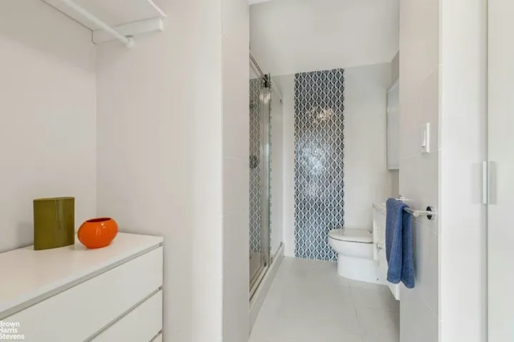 The sleek modern kitchen features Kraft maid custom cabinetry, quartz countertops, Converto Mezzo marble mosaic tiles and Bosch stainless steel appliances. A spa-inspired Embarcadero Candlestick and Dazzle mosaic accent tile bathroom offers a walk-in shower and top-of-the-line fixtures for a luxurious retreat. Additional highlights include a custom window enclosure for the heating and air conditioning system, generous closet space with custom barn doors and a spacious living area perfect for entertaining or relaxing.