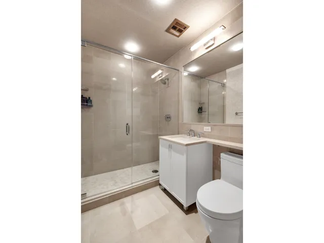 The grand living and dining area is ideal for refined entertaining or quiet enjoyment, with a seamless flow into the windowed chef’s kitchen-featuring dual entrances, premium appliances, and a discreet in-unit washer and dryer. Each of the three generously proportioned bedrooms includes an en-suite bath appointed with elegant finishes and spa-level details. An integrated in-ceiling sound system, central air, and custom lighting elevate the living experience throughout the home.