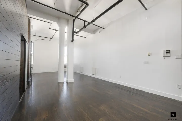 This authentic loft boasts an open layout, featuring a spacious kitchen, living room, and dining area. A dedicated home office leads to a full-height loft bedroom above. The impressive 16-foot ceilings make the space light, airy, and expansive. A large walk-in closet and a second bedroom complete this exceptional home.