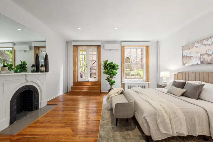 From the moment you step inside, the home whispers of character and craftsmanship-original crown moldings trace the high ceilings, hardwood floors glow with patina and polish, and a wood-burning fireplace anchors the gracious living room like the heart of a novel you can’t put down. Oversized windows pour in natural light by day and frame absolute stillness by night-pin-drop quiet in the very heart of Manhattan.