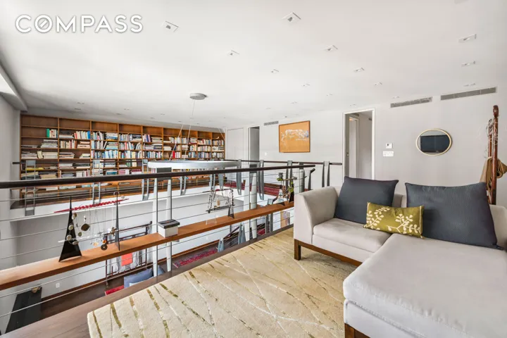 Up the dramatic staircase are 2 primary bedrooms; both with ensuite baths. The first primary has two exposures, South and West and the bathroom features a shower that is also a sauna. The second primary has a Miele washer/dryer and a large bathroom with both an oversized tub and a shower. An open library on this floor could be used as a bedroom loft or enclosed for a 3rd private bedroom.