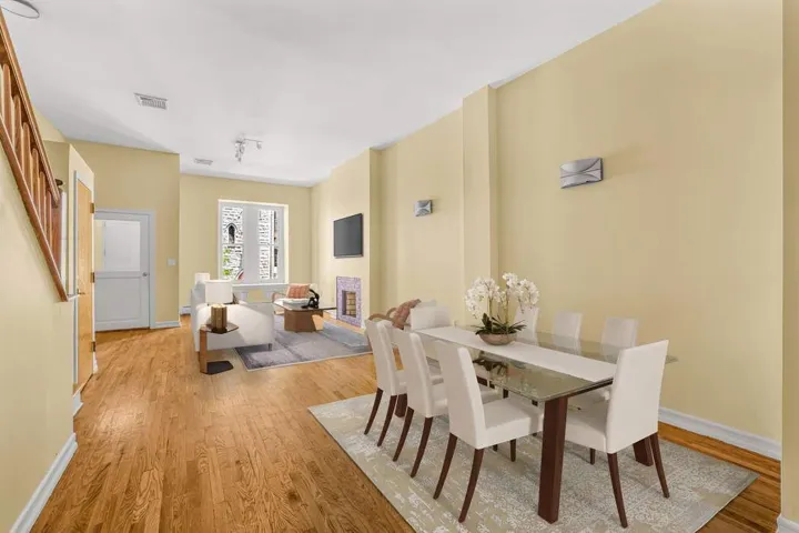 Spanning the parlor, second, and third floors, the owner’s unit boasts 4 spacious bedrooms, an office/den, and 2.5 bathrooms. High ceilings, and generous room proportions make this a perfect canvas for a custom renovation. As you step through the entrance, you’ll be greeted by hardwood floors that span throughout the residences. The townhouse’s design ensures ample natural light through its northern and southern exposures, creating a bright and inviting atmosphere.