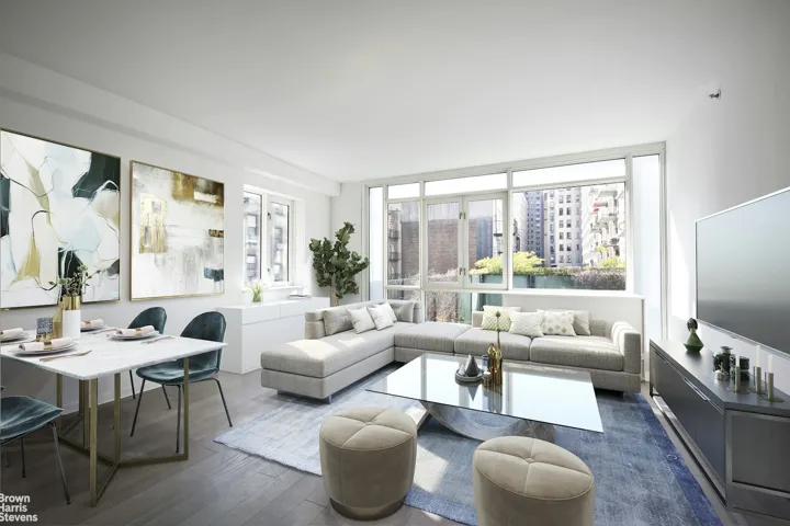 The building offers a full suite of amenities, including a 24-hour doorman, live-in super, private landscaped terrace, resident lounge, fitness center and a large, landscaped roof terrace with panoramic views.
