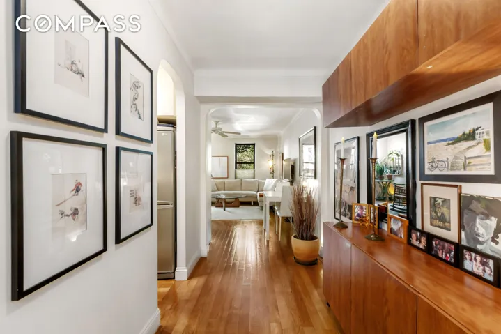 The entry Gallery houses a wonderful built-in cabinet offering upper and lower storage, a display area for your treasures and also serves as a welcoming transition from the entryway to the broader living space.
