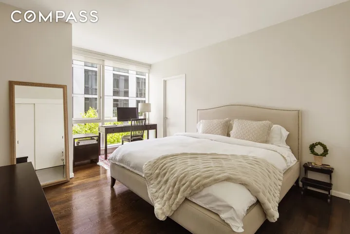This sрaсіous and mеticulοuѕly designed 2-bedrοom, 2.5‐bathroom apartment makes the most of every square foot. As you step inside, you are greeted by a generously sized walk-in closet, offering immediate storage convenience. The open-concept gourmet kitchen is a chef’s dream, outfitted with designer finishes, including high-end stainless steel commercial appliances, Basaltina lava stone countertops, and luxurious Calacatta marble backsplashes. Perfect for entertaining, the kitchen flows effortlessly into the dining area, which features custom built-in shelving, ideal for creating a comfortable home office or additional storage space.