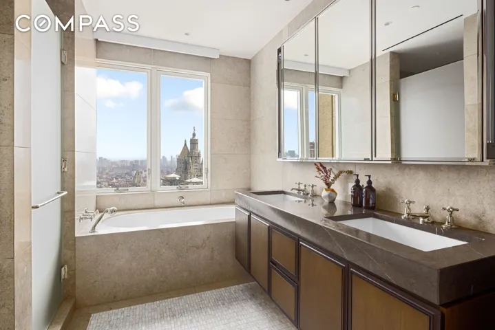 Located on the 43rd floor of the iconic Beekman Residences, this 2 bed, 2.5 bath luxury apartment boasts 1,625 square feet with 10’ ceilings and floor-to-ceiling windows that feature jaw-dropping views with north, west and south exposures. Catch the morning sunrise, the evening sunset or the City’s nighttime tapestry of lights. Protected vistas include many of the City’s landmark buildings, City Hall Park and both the East and Hudson Rivers.