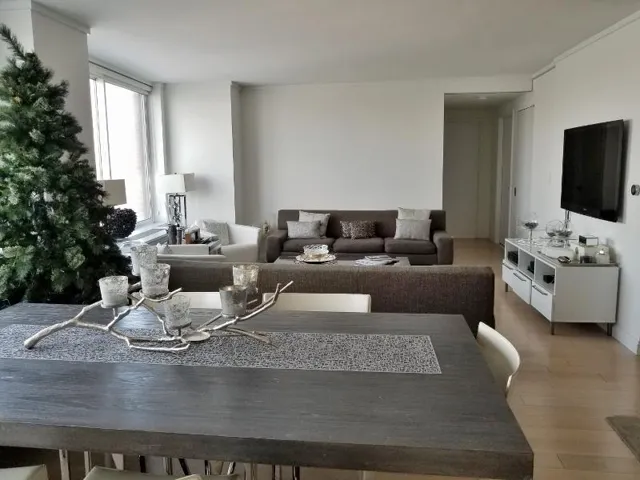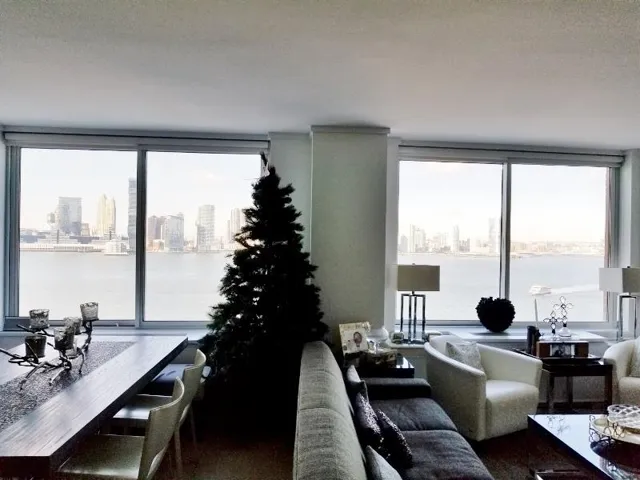 Battery Park City is a bright waterfront unit with full Hudson River and park views. It is a new building with top-of-the-line appliances, a marble bath, a washer and dryer, and an all-modern design. Amenities include a full-time doorman and concierge, a fitness center, a playroom, and a roof terrace with a sundeck promenade