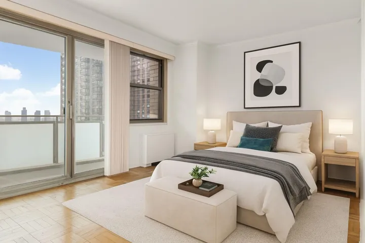 The king-size bedroom offers generous closet space and tranquil views, while the updated bathroom features clean modern finishes. The crown jewel of this home is the private terrace-rarely found at this scale-ideal for lounging, dining, and enjoying panoramic skyline and East River views.