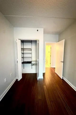 Enjoy peaceful treetop views from both bedrooms, along with soundproof windows, dark brown bamboo flooring, and radiant heat throughout. Each room features its own in-wall air conditioning unit for personalized comfort, plus ample closet space with custom Container Store systems.