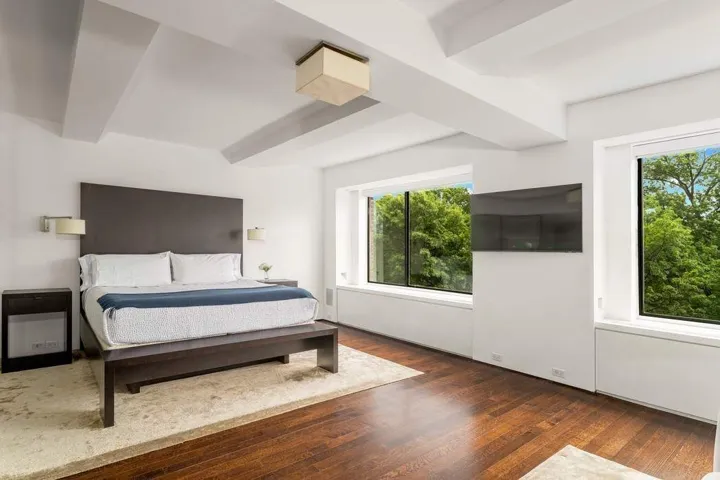 The sprawling primary suite provides scale and serenity, offering stunning park views, a spacious layout with ample room for sleeping, sitting, and office areas. A custom-designed dressing room, and a beautifully appointed ensuite bath with premium finishes complete this private retreat.