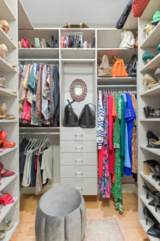 The king-sized primary was designed as a calming retreat offering DUAL custom walk-in California Closets and an incredibly generous spa-like limestone en-suite with massage shower and deep soaking tub.