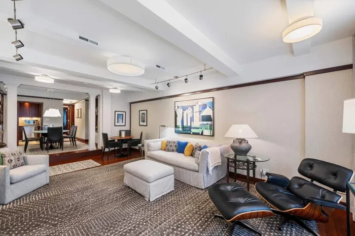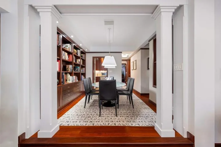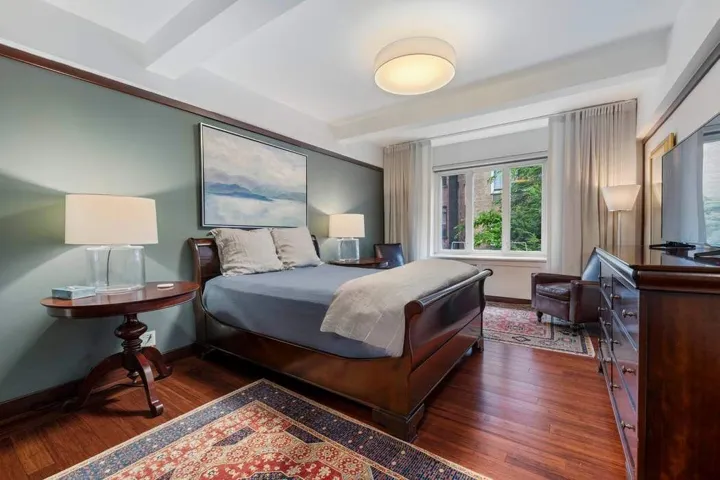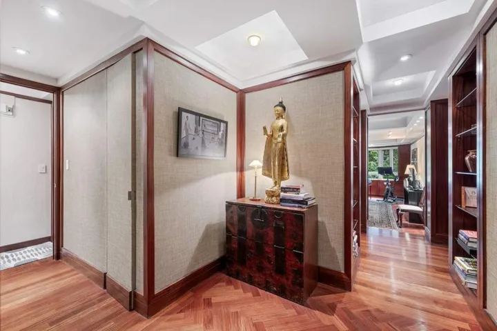 This bespoke home is the result of a seamless combination of two units into one massive, turn-key two-bedroom, two-bathroom residence. This stately and impressive offering is sure to inspire the most discerning of buyers, with not a single detail overlooked throughout the renovation. From custom mahogany millwork and moldings, to immaculate herringbone floors, to luxurious grass cloth wallpaper, beamed ceilings, and tailored lighting, this offering has it all, serving as an astounding opportunity for one lucky buyer.