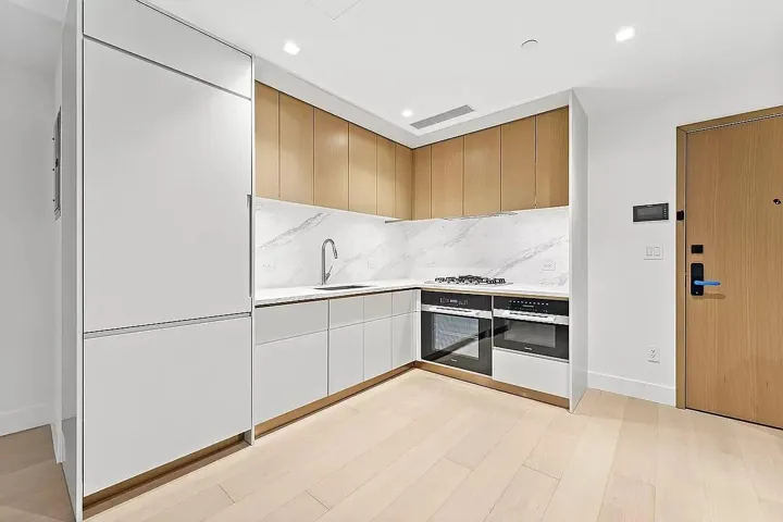 Each home at 208 Delancey boasts a modern open-plan layout that seamlessly blends form and function. The kitchens are crafted with custom oak cabinetry, marble countertops and waterfall islands, and backsplashes for an elegant yet functional design. Bathrooms are refined with custom walnut vanities, walk-in showers, integrated lighting, and radiant heated Blue De Savoie marble floors.