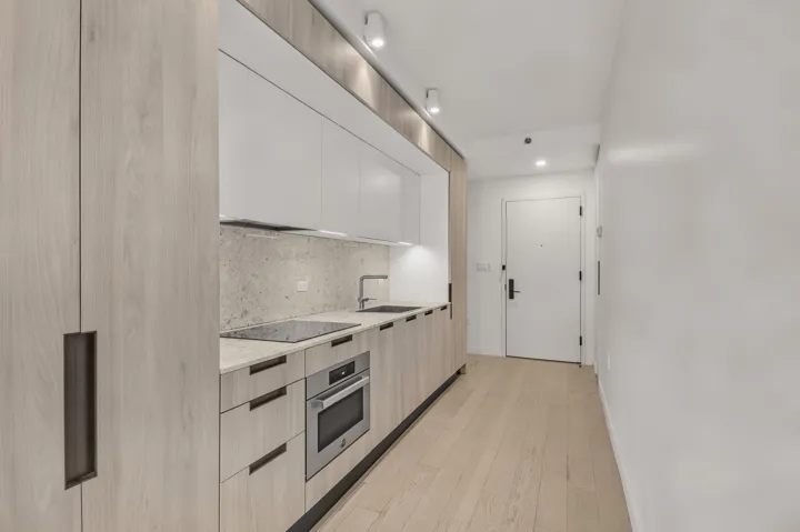 Perched on a high floor for optimal sunlight and minimal street noise, this designer studio in East Harlem’s newest boutique condominium, HUXLEY, offers a sleek, thoughtful layout with premium imported Italian finishes, wide plank oak flooring, and oversized black-framed windows that fully open to create a seamless indoor/outdoor experience.