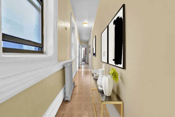 Spacious 2Br/1Bth with soaring ceilings, gallery-style entry hallway with lots of walls for hanging your favorite art , windowed Eat in kitchen, large living room perfect for entertaining and two quiet bedrooms. There are lots of windows and ample storage space.