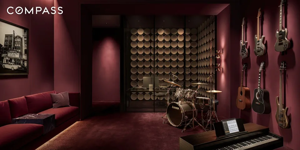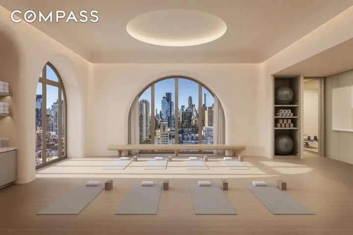 The Yabu Pushelberg designed public spaces and amenities, bring a fresh and vibrant point of view while still respecting the Upper East Side sensibility. In the tower, a seventy-five-foot swimming pool with soaring ceilings and beautiful views is the centerpiece of a collection of comprehensive wellness and entertainment spaces designed with a hospitality perspective, including a fitness center, yoga room, spa with steam room and sauna, and a massage/treatment room. A library in the sky with a charming fireplace opens to a dramatic outdoor space. Additional building amenities are all designed at the highest level with something for everyone, including a cinema, a sports simulator, a kids club space, and a soundproof music practice room with a recording studio. Beyond the gates of the porte-cochere, there is a concealed automated parking system at ground level. The lobby will be attended 24 hours a day with a doorman and concierge service. The complete offering terms are in an offering plan available from the sponsor, file number CD23-0340.