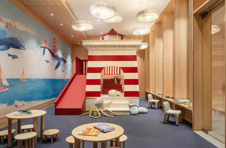 The Garden level features our ground floor amenities. Through a private entry court, a contemporary porte cochere welcomes you to a sheltered vestibule, and to the building’s triple-height lobby. The fully serviced lobby features a sculpture by Jacob Hashimoto and floor-to-ceiling window walls. Adjoining the lobby is the private garden lounge, perfect for reading a book, while overlooking the MPFP-landscaped Gair Gardens. Located in the building’s lower level, The Club is all about fun and fitness, complete with a game lounge, bar, two-lane bowling alley, state-of-the-art fitness center, spin studio, boxing gym, private locker rooms and maritime-themed kid’s playroom. The Bridge level of Olympia is located on the 10th floor and offers a variety of indoor and outdoor amenities dedicated to recreation and relaxation. Features include a 60″ indoor lap pool, wellness amenities, juice bar, a 58″ outdoor pool and hot tub, cabanas, barbecue areas, children’s ship-inspired playground & waterpark, and a full-size tennis court overlooking the Brooklyn Bridge, lower Manhattan and beyond. Additional services include private on-site parking available for rent or purchase, 24-hour doorman and concierge, package room with refrigerated storage, bicycle storage and private residential storage available for purchase.