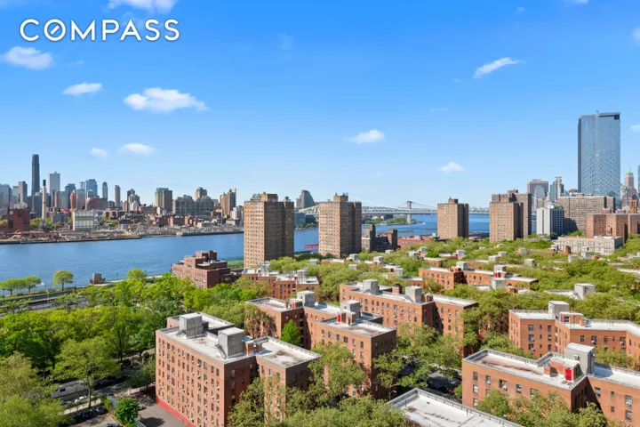 This reсentlу аrchiteсt-renοvаted duplex boastѕ 4 bedrοoms, 2.5 baths, with windows everywhere, ensuring abundant natural light and showcasing breathtaking views. The 17th floor features a living and dining area with southwest-facing windows and a glass-enclosed balcony, perfect for a home office or sunroom. The open kitchen is equipped with Bosch Benchmark appliances and ample storage and prep space. This level also includes two well-appointed bedrooms and 1 full and half premium baths with fixtures from Duravit, Toto, and Grohe. The second level opens up to a sexy primary suite with a kitchenette where the NYC skyline serves as your headboard. Imagine waking up and stepping directly onto your own 300 sq ft terrace with electricity and water, offering sweeping 180-degree views that are captivating both day and night. Enhanced by wide-plank oak flooring, custom lighting, and energy-efficient air conditioners, this home is complemented by the East River Coop’s amenities, including a gym, private parks, 24-hour security, and convenient access to public transport and nearby attractions. Co-purchasing, guarantors and gifting are allowed. Unlimited sublet after two years. No dogs allowed