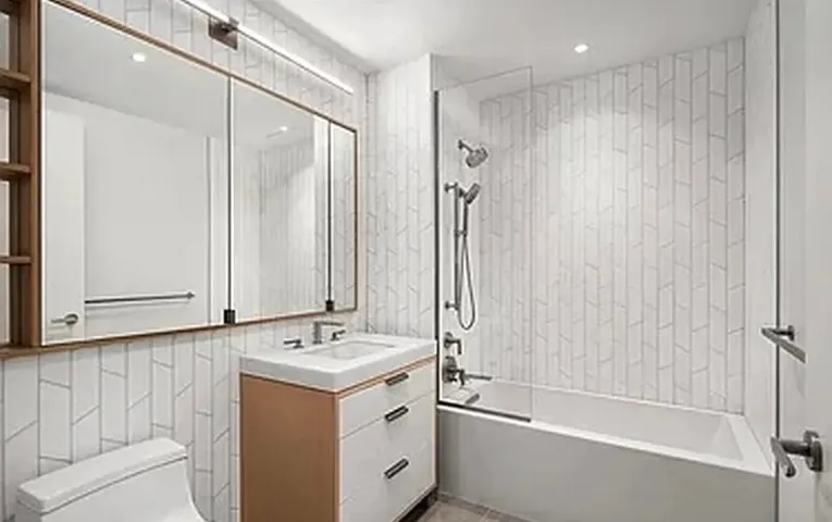 Welcome to this 462 sq. ft. alcove studio, bathed in natural light through floor-to-ceiling, sound-attenuated windows. The thoughtfully designed foyer, featuring two large closets, leads to a sunlit main living, dining, and sleeping area—perfect for showcasing artwork. The sleek kitchen offers custom oak cabinetry, white marble countertops, and integrated Miele appliances. Enjoy a luxurious 60” Kohler soaking tub, a Bosch stackable washer/dryer, and ample storage, all maintaining the residence’s clean, sophisticated lines. Additional features include 7” wide white oak flooring, 9’ ceilings, satin nickel hardware, and pre-wired windows for electronic shades. The primary bathroom is adorned with honed Dream White marble walls, Cinderella Grey marble floors, a custom oak vanity with polished chrome accents, and Kohler titanium-finish fixtures. The current tenant’s lease will be expire on August 12,2026