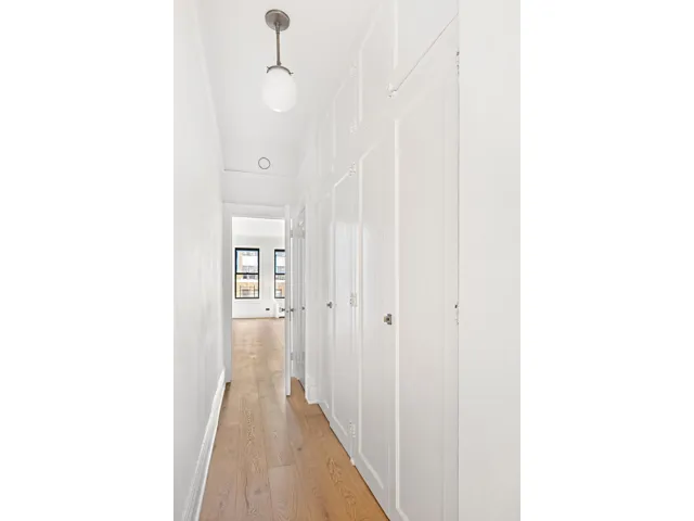 Down the hallway, lined with generous closet space, the primary bedroom features an en-suite, windowed bathroom, while the secondary bedroom is equally spacious with two closets and windows framing a sneak peek of the sky over 86th Street.