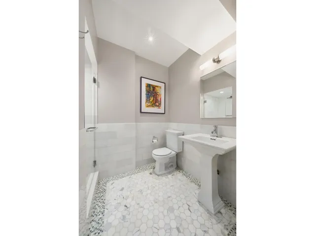 An uncommοn levеl οf sophіstiсаtion will be expеriеnced in this Chelsea Duplex Loft at the Carriage House, a boutique condominium, with an INDOOR PRIVATE PARKING SPACE INCLUDED! This townhouse-style loft home features 11.5″ high ceilings, 7″ wide plank solid oak floors, oversized windows, central air conditioning controlled by Nest, two full bathrooms, and offers high-end finishes throughout. The main floor has a large open living/dining room, oversized California closet and coat closet, & Chef’s kitchen complete with custom wood cabinetry, top of the line stainless appliances: Wolf gas cooktop and convection oven, Subzero refrigerator, and Bosch dishwasher. Also on the main level is a spa-like bathroom featuring Carrara and Absolute White marble accents, Zuma soaking tub, radiant heating and a separate enclosed shower with rain fixture. On the lower level, the tranquil bedroom suite with additional sitting area has a walk-in California closet plus a large additional closet, a tastefully renovated full bathroom featuring custom Carrara and Absolute White marble shower, and a Bosch washer and dryer closet located just outside the bath. And finally, a small private patio provides a little outdoor space for you to take in some fresh air or add a bit of greenery to your decor. The Carriage House has a common landscaped roof deck complete with furniture and grill, as well as part-time doorman/superintendent, video intercom, private parking garage and storage (each unit includes one bin). Prime Chelsea location convenient to 1, M, F, E and C trains, 23rd Street bus and Whole Foods, Fairway Market, Trader Joe’s and more!