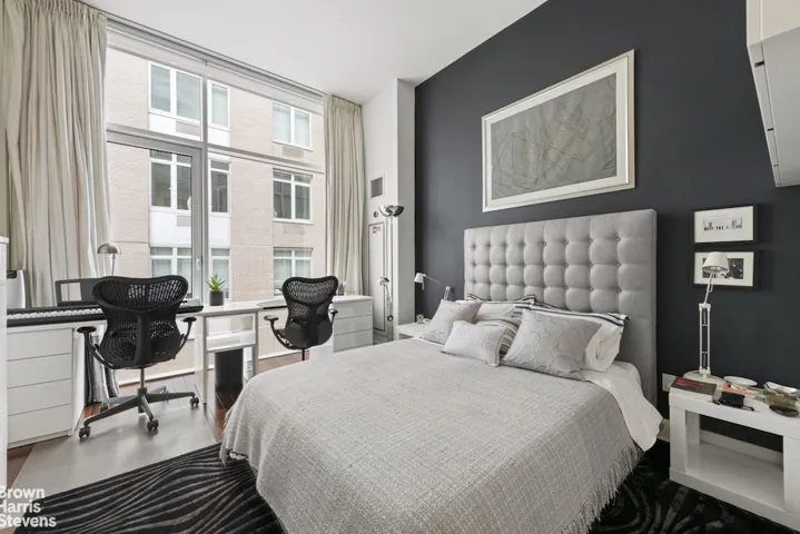 Welcome to Residence 3F at The Adagio, where modern design meets everyday comfort. With soaring 11.4-foot ceilings and walls of glass framing peaceful garden views, this home feels both impressive and inviting. Set back from the street, the residence offers a rare sense of quiet and calm, free from city noise. Whether you’re cooking in the chef’s kitchen, unwinding in the spa-like bathroom, or enjoying a sunlit morning in the living room, every detail is designed to make daily life feel special.