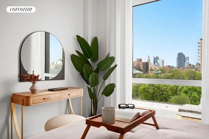 Each of the 138 one- and two-bedroom floor plans, cleverly conceived by award-winning NYC-based DXA Studios to maximize each resident’s living experience, boasts oversized floor to ceiling glass to allow natural light to stream in from sunup to sundown. The sense of expansiveness in each of these homes is enhanced by private outdoor balconies with sweeping views of Downtown Brooklyn, the Brooklyn and Williamsburg Bridges, Manhattan’s awe-inspiring skyline, or the charm of tree-lined streets and the picture-perfect Gothic Revival steeple of the church below.