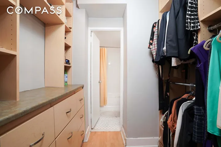 The bedroom comfortably fits a queen-size bed and is equipped with a custom-built walk-in closet for all your storage needs. The recently renovated bathroom features a luxurious bathtub, a vanity with generous storage, and a convenient medicine cabinet.