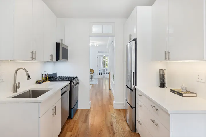 This apartment is a comfortable three flights up, with the recent complete interior renovation of the hallways on the proper and wide staircases of the building.
