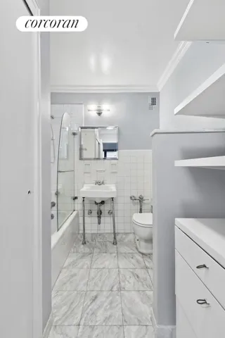 An oversized and extra wide, luxuriously livable studio. 166 East 61st Street, Apartment 10M is a renovated high-floor alcove studio/convertible one-bedroom with Southern exposures and an abundance of natural light overlooking the iconic Bloomingdale’s. How convenient! The evening views are breathtaking and a perfect backdrop for entertaining. Located in a full-service building in the heart of the Upper East Side, this south-facing apartment offers the opportunity for an ideal pied-a-terre or primary residence. The spacious layout features a 30″ long living space with a separate bedroom alcove, providing ample room for living, dining, and sleeping. The apartment boasts four deep closets, including a walk-in dressing room in the large full bathroom. Additional features include through-wall air conditioning and heating, renovated hardwood floors, crown moldings, and a garbage disposal in the kitchen. Washers/dryers are permitted as a bonus.