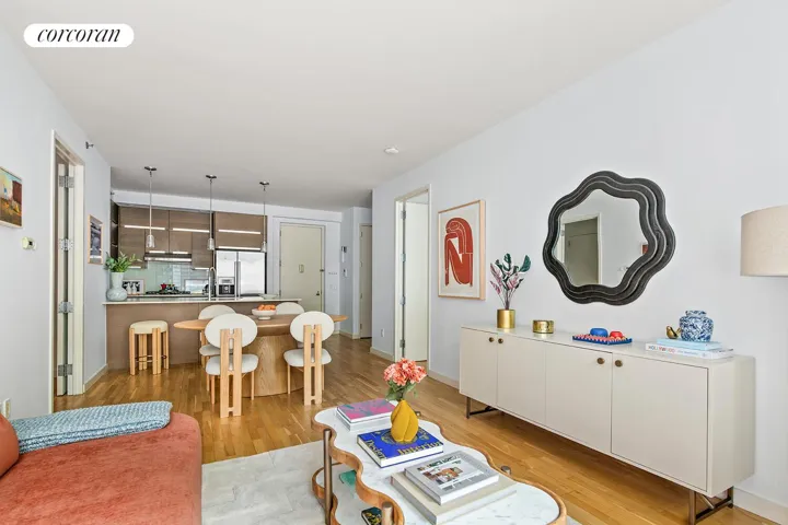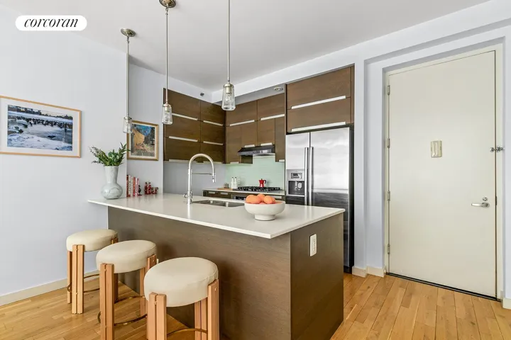 Practical charm meets vibrant Clinton Hill! This 2-bedroom, 2-bathroom at the Isabella condominium is an impressive 1,143 square feet, and offers a perfect blend of urban living, sophistication, and practicality. This apartment has a wonderful layout – huge living room, large open kitchen, and king-sized bedrooms. Add in the creature comforts – washer/dryer, excellent appliances, new heating/air-conditioning units, mechanized shades, and you have a very large, comfortable space at the confluence of Clinton Hill, Prospect Heights, and Fort Greene. The best of all worlds! The oversized living room window perfectly frames the view of gorgeous Clinton Hill brownstones, and lets in an abundance of light. The open-concept kitchen is a home chef’s dream, with a large center island and plenty of space to make memorable meals. Both bedrooms are very well-sized, have walk-in closets, and the primary bedroom features an en-suite bath with a double shower.