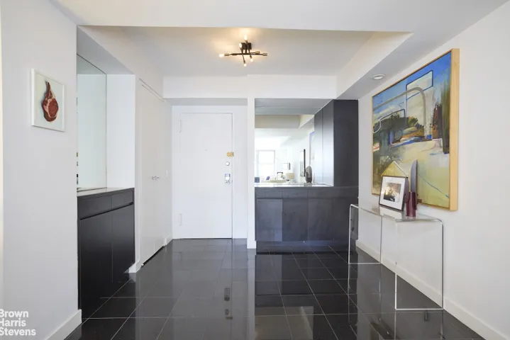 walk-in closet upon entry, and a windowed en suite bath. The second bedroom has three closets, a built-in desk and custom bookshelves, and a charming view. The windowed second bath, located off the bedroom hall, also serves as a guest bath and includes a vented stacked washer/dryer. The apartment features recently renovated through-the-wall air conditioning as well as a vast walk-in closet off the bedroom hall, with ample room to store luggage, skis, golf clubs, and bikes. Use of a large storage bin also transfers with the apartment.