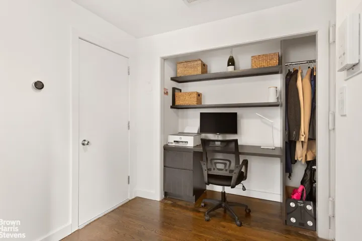 Additional highlights include recently refinished espresso-stained hardwood floors, a central HVAC system and installed custom window treatments with dual-function blackout shades in the bedroom. Monthly maintenance includes complimentary shared storage on every floor as well as gas & water.