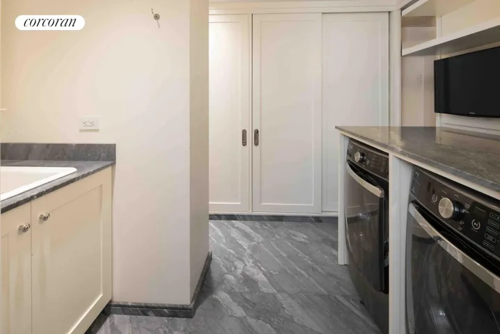 Additional highlights include a custom Crestron smart home system, individually controlled heating and cooling, and private storage that transfers with the apartment. 2% flip tax