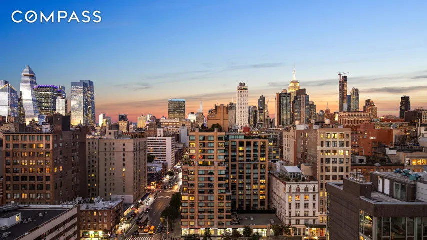 Conveniently positioned high above Central Chelsea, equidistant to West Chelsea/Hudson Yards, the Flatiron District/Union Square, and Greenwich Village just four streets south, this impressive Triplex penthouse delivers unprecedented volume, light, and big views. While the building is boutique-scaled, it boasts an impressive array of amenities, including a 24-hour doorman, swimming pool, and fitness center.