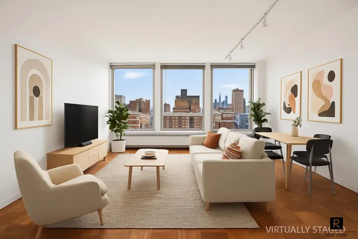 Unlock the potential of this oversized one-bedroom home in one of Manhattan’s most iconic buildings. With dramatic south-facing picture windows, the residence is drenched in natural light and offers sweeping city views throughout the day.