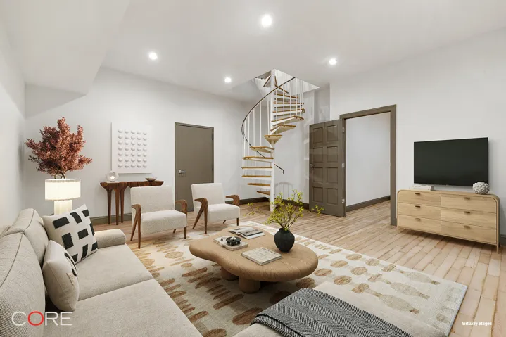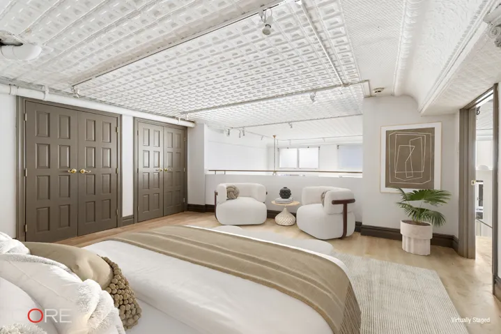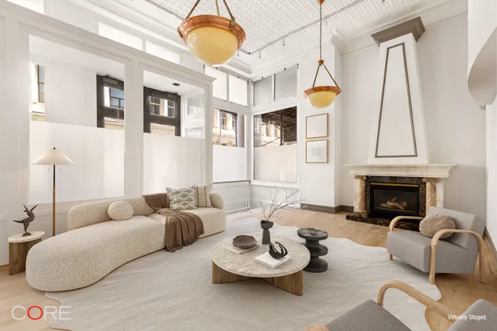 Spanning approximately 4,450 square feet across three expansive levels, the residence is set within an 1861 cast-iron landmark and showcases original prewar detail alongside refined modern updates. It has three bedrooms, three ensuite bathrooms, two half bathrooms, WIC, home office, media room, living room, dining room, and kitchen. Soaring 17-foot ceilings, Corinthian concrete columns, hardwood floors, and oversized windows define the dramatic main level, while a highly adaptable layout across all three floors suits a wide range of living and working needs.
