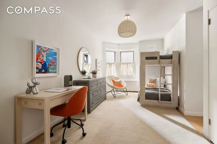 The apartment has hardwood strip floors throughout (except in the primary bedroom) as well as a- unique for the building -in unit washer/ dryer. There is incredible closet space throughout. A basement storage unit also transfers with the apartment.