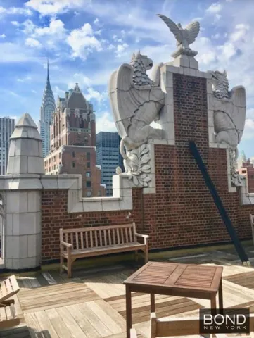 The building is a stunning pre-war example of Gothic Revival built in 1928 complete with original stained glass windows in the lobby. This well maintained, full-service building has a newly renovated laundry room in the basement, breathtaking views from the shared roof-deck, and the lovely parks right out front. It’s also conveniently close to Grand Central Station, buses, restaurants, and shopping.