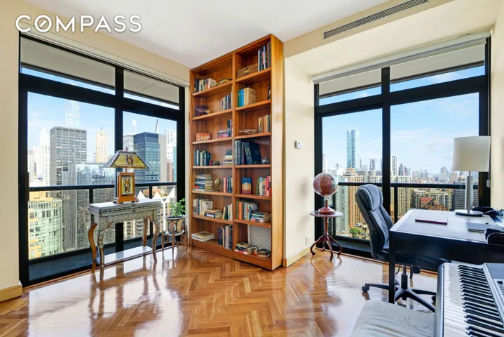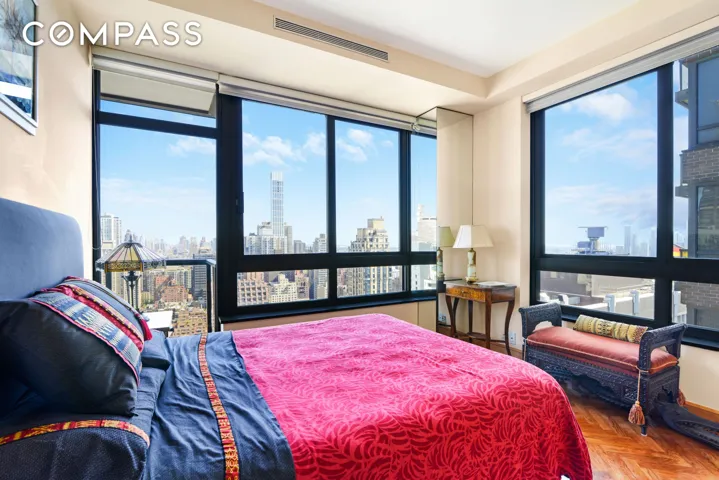With 31 windows enveloping this well-appointed corner home, natural light floods the space, creating a welcoming and bright atmosphere throughout the day. The residence is adorned with luxurious marble bathrooms, a wet bar, a towering wine closet, high ceilings, American Cherry herringbone flooring, and custom high- quality built-ins, exuding sophistication and attention to detail at every turn. The primary wing, along with two of the bedrooms, can be easily closed off to provide a private sanctuary within this palatial residence. Whether you’re admiring the expansive daytime vista or gazing at the stunning city lights at night, this sophisticated home is sure to impress at every turn.