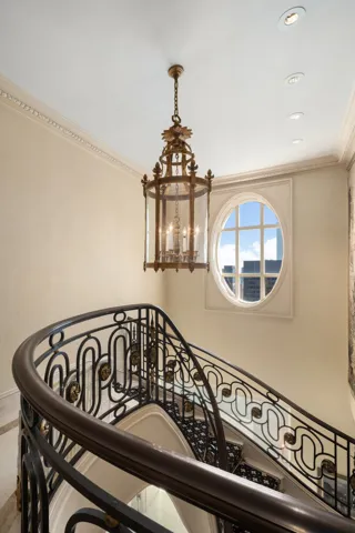 Spanning the full north and south exposures, this palatial duplex is a masterpiece of proportion, volume, and light. A dramatic double-height foyer with an imposing circular staircase introduces the residence, leading to an enfilade of grand entertaining rooms measuring nearly 100 feet in length. Floor-to-ceiling windows frame mesmerizing views of the Manhattan skyline, Central Park, and beyond, while multiple setback terraces-totaling over 2,000 square feet-invite outdoor dining and entertaining above the city.