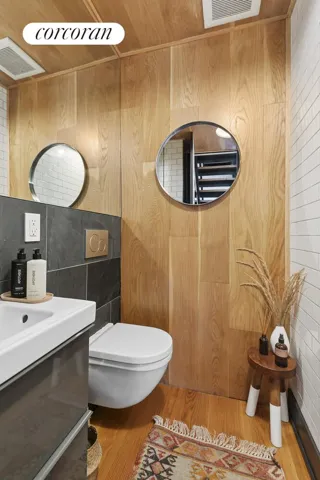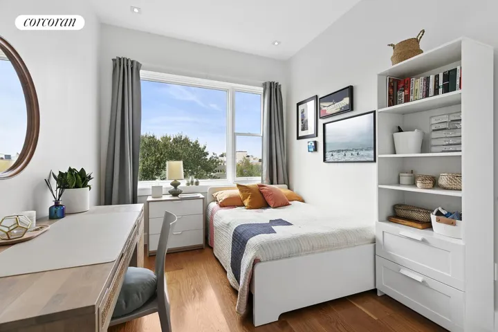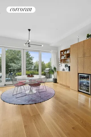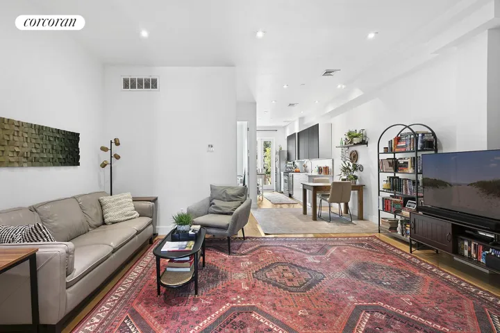 The upper three levels form its own townhouse with an airy, light-filled 4-bedroom, 2.5-bath owner’s duplex. Oversized floor-to-ceiling windows frame garden and city views, while recessed lighting, central HVAC, and an open, loft-like layout enhance everyday comfort.