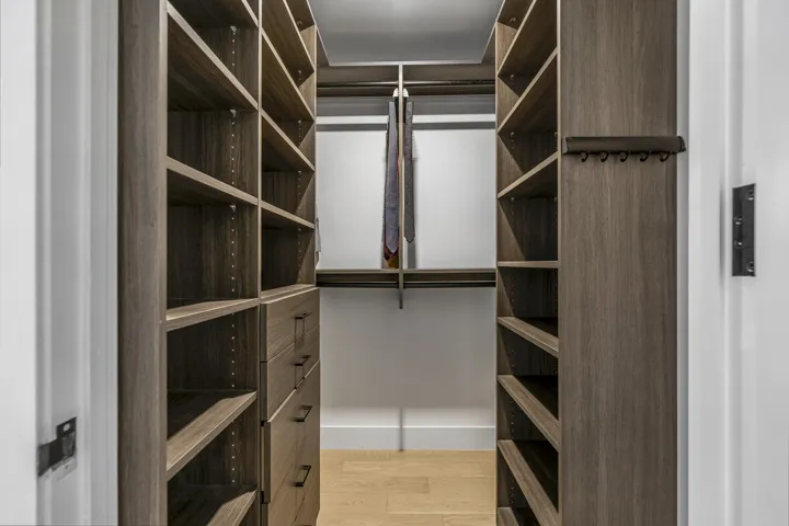 The open kitchen features a Calacatta Quartz waterfall island, Italian Cesar cabinetry, and a fully integrated Miele appliance package. The primary suite includes two walk-in closets and a spa-like bath with a rain shower, matte black Kohler fixtures, and Calacatta tile. A second bedroom and full bath offer flexibility for guests or office use. Additional highlights include in-unit W/D, a foyer with closet storage, and 2 DEEDED storage units on the 6th floor that can be combined.