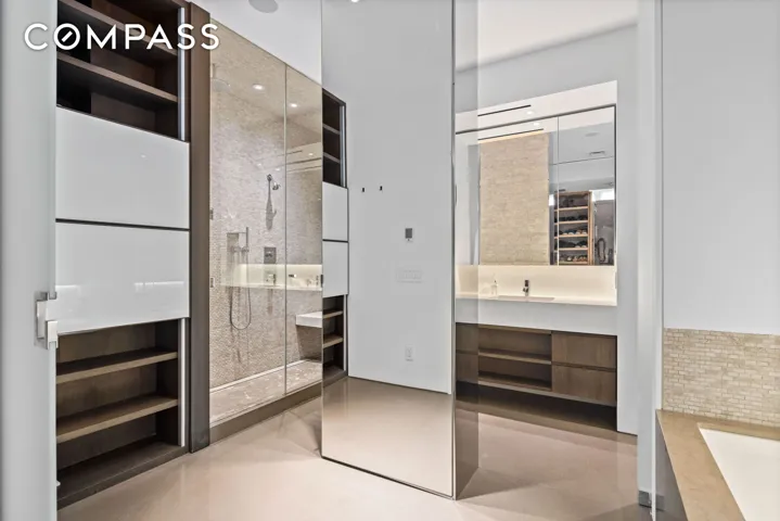 Storage galore with custom shelving for books and comfortable nooks for reading. A large Mudroom is on the private landing and a 10′ x 10′ storage closet is ideally located inside of the apartment. True laundry room allows for ironing and folding with ease.