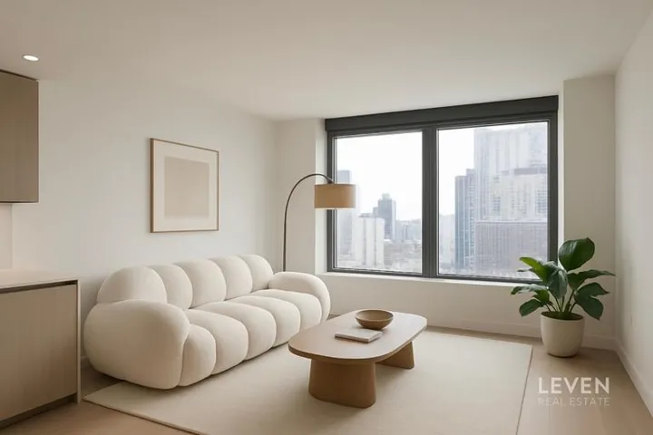 Sun‐drenched on a high floor, offering stunning city views. Designed with modern living in mind, the unit features sleek finishes, a thoughtfully laid-out floor plan, and an in-unit washer and dryer for added convenience. Natural light floods the space throughout the day, creating a warm and inviting atmosphere that perfectly complements the high-quality interior craftsmanship.