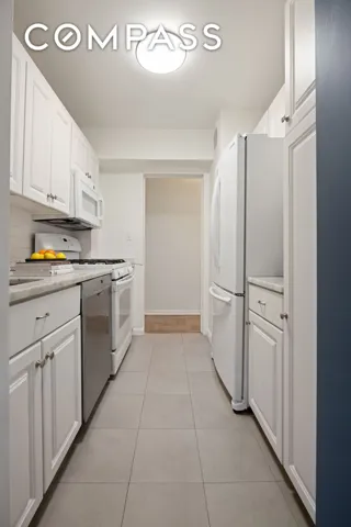 A 23-foot long Living Room serves as the perfect backdrop for comfortable living and dining. The stylish kitchen features marble countertops, ample cabinetry, and full-sized appliances, including a Bosch dishwasher and a Samsung French door refrigerator.