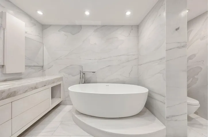 With three oversize marble bathrooms and an additional half bath, this residence exudes sophistication and comfort.